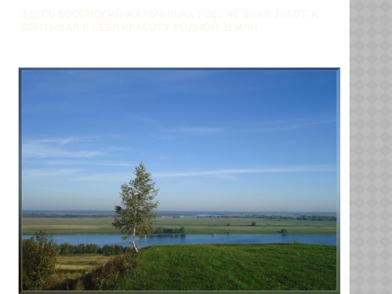 Слайд 6Здесь босоногий мальчишка рос, не зная забот и впитывая в себя