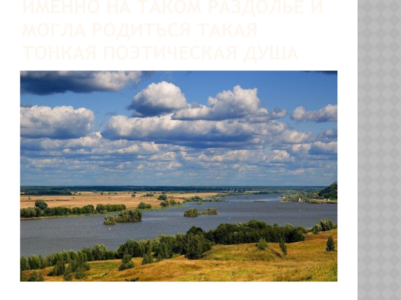 Слайд 4Именно на таком раздолье и могла родиться такая тонкая поэтическая душа