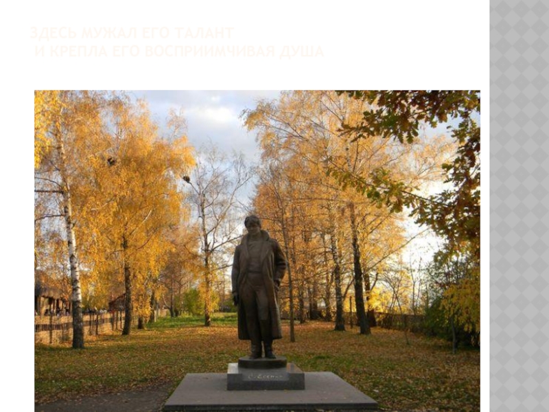 Слайд 7Здесь мужал его талант и крепла его восприимчивая душа