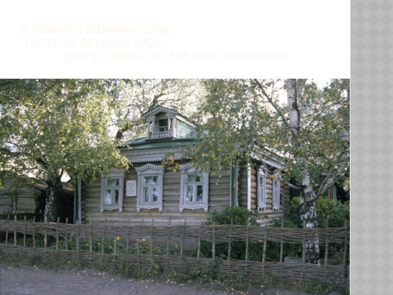 Я покинул родимый дом,  Голубую оставил русь…        Дом есениных