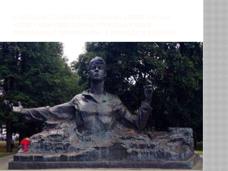 Слайд 12И сегодня со своего постамента поэт как бы читает нам свои