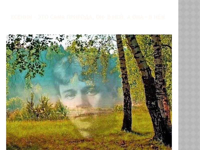 Слайд 8Есенин – это сама природа, он- в ней, а она –