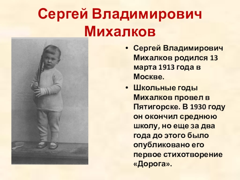 С. В. Михалков родился 13 марта 1913 года в Москве.
