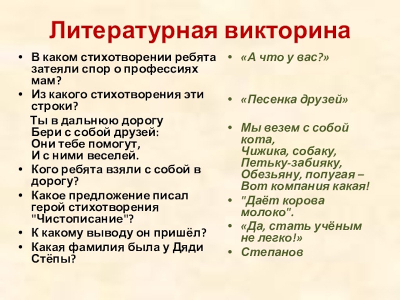 Стихи, рассказы, сказки, басни, пьесы, переводы, статьи, сценарии.