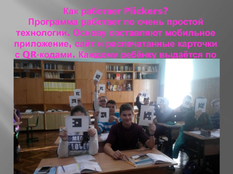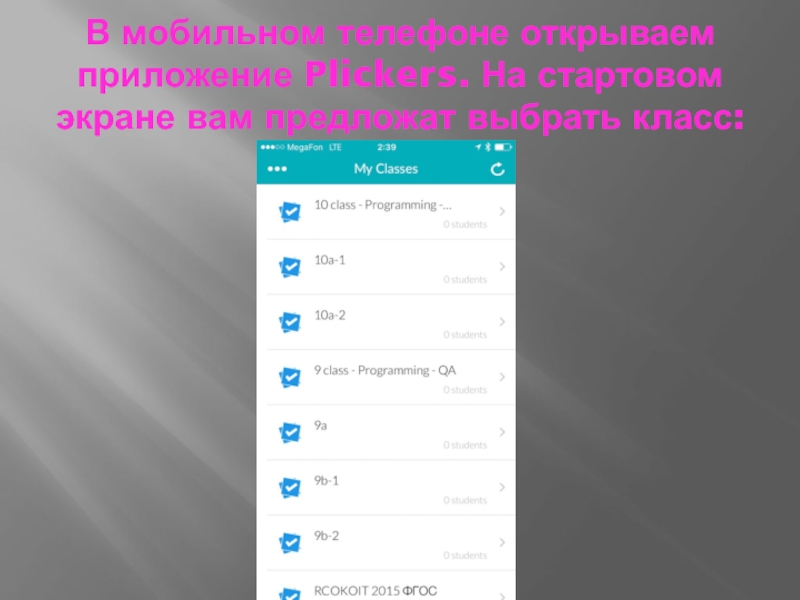 Слайд 14В мобильном телефоне открываем приложение Plickers. На стартовом экране вам предложат