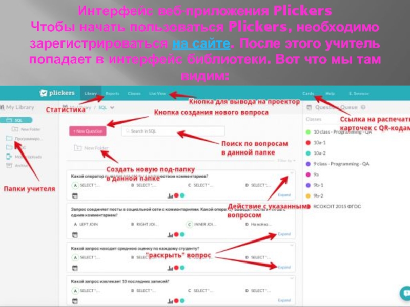 Слайд 15После выбора класса вам будет показана очередь вопросов, которую мы задали