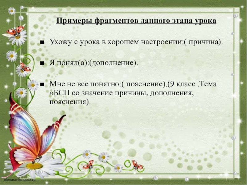 Мне не все понятно:( пояснение).(9 класс .Тема «БСП со значение причины, дополнения, пояснения).
