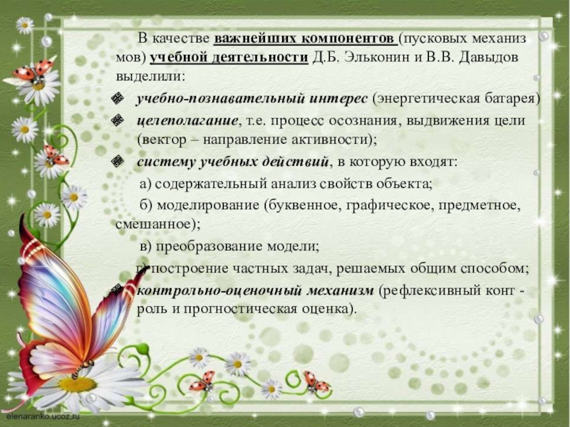 учебной деятельности Д.Б. Эльконин и В.В. Давыдов выделили: