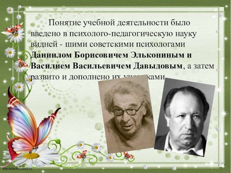 науку видней - шими советскими психологами Даниилом Борисовичем Элькониным и Василием Васильевичем Давыдовым, а затем развито и дополнено их учениками.