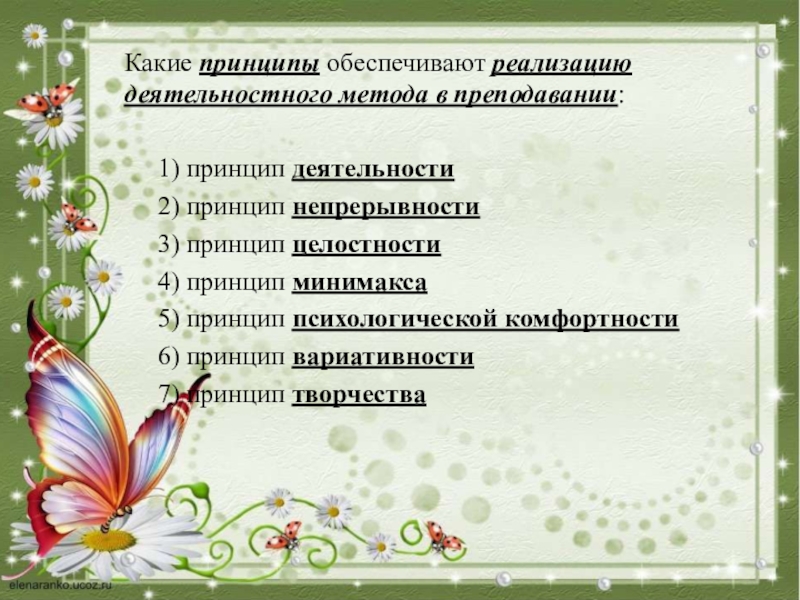 Какие принципы обеспечивают реализацию деятельностного метода в преподавании: