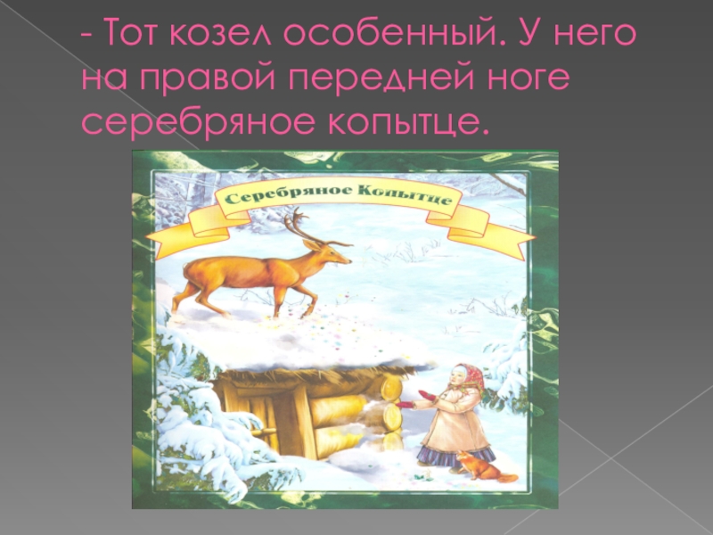 Слайд 6- Тот козел особенный. У него на правой передней ноге серебряное