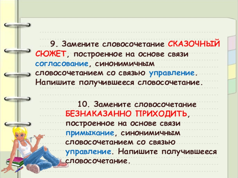 10. Замените словосочетание БЕЗНАКАЗАННО ПРИХОДИТЬ, построенное на основе связи примыкание, синонимичным словосочетанием со связью управление. Напишите получившееся словосочетание.