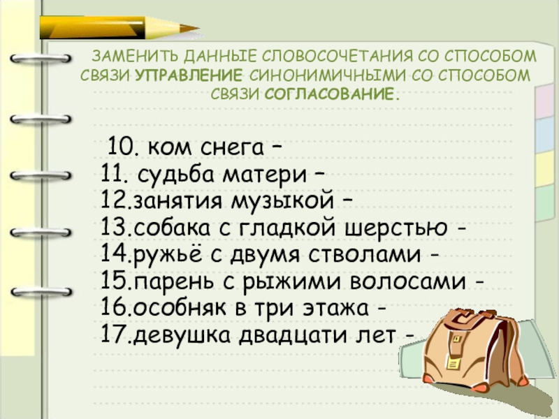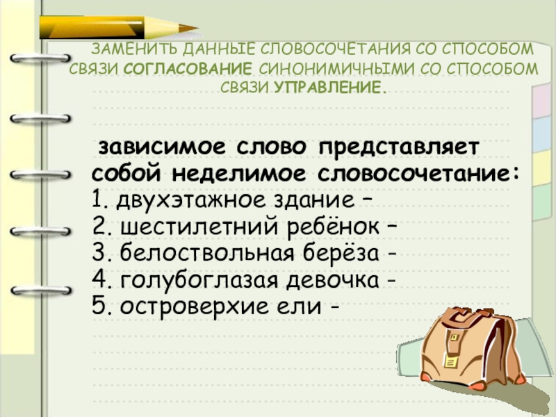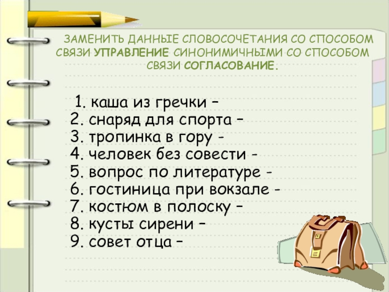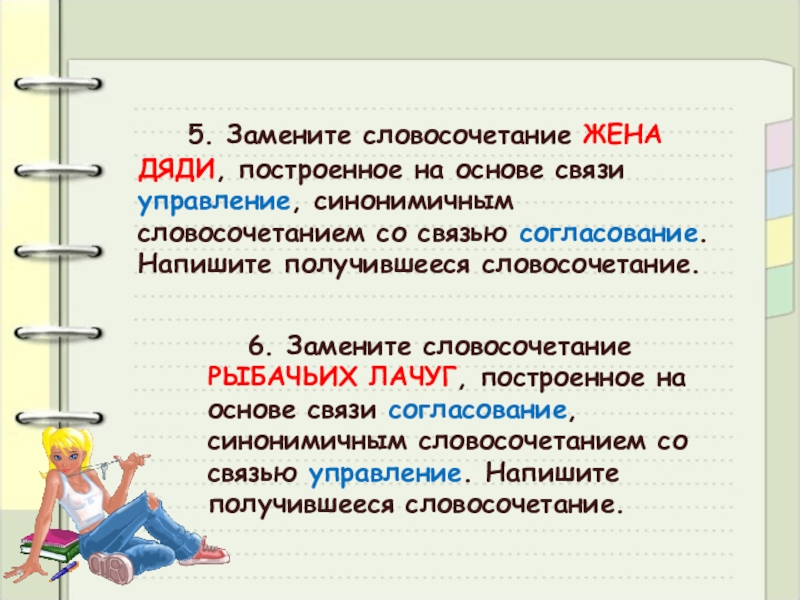 6. Замените словосочетание РЫБАЧЬИХ ЛАЧУГ, построенное на основе связи согласование, синонимичным словосочетанием со связью управление. Напишите получившееся словосочетание.