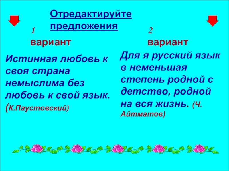 Для я русский язык в неменьшая степень родной с детство, родной на вся жизнь. (Ч.Айтматов)