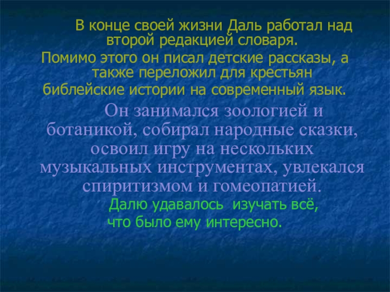 Далю удавалось изучать всё,
