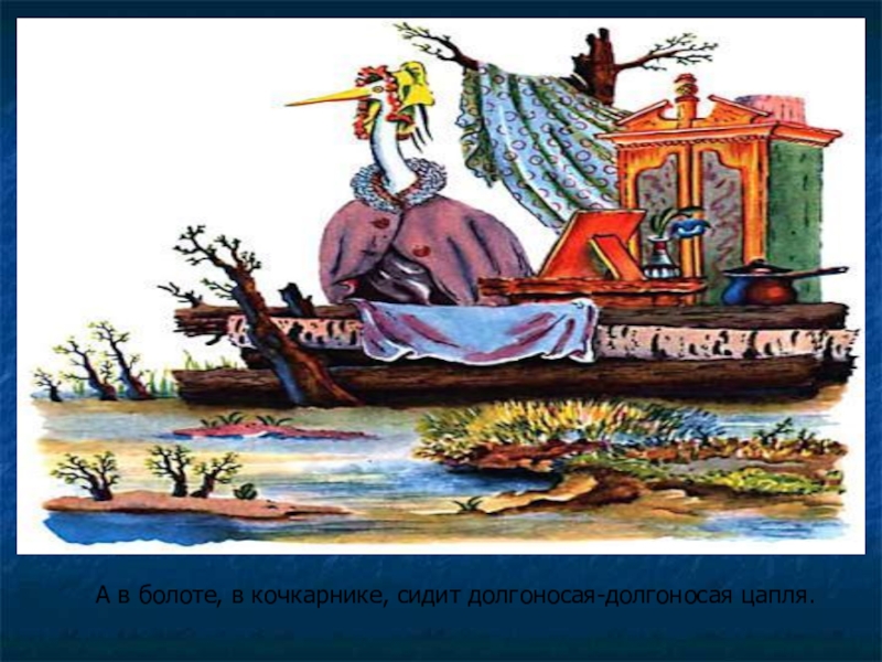 А в болоте, в кочкарнике, сидит долгоносая-долгоносая цапля.