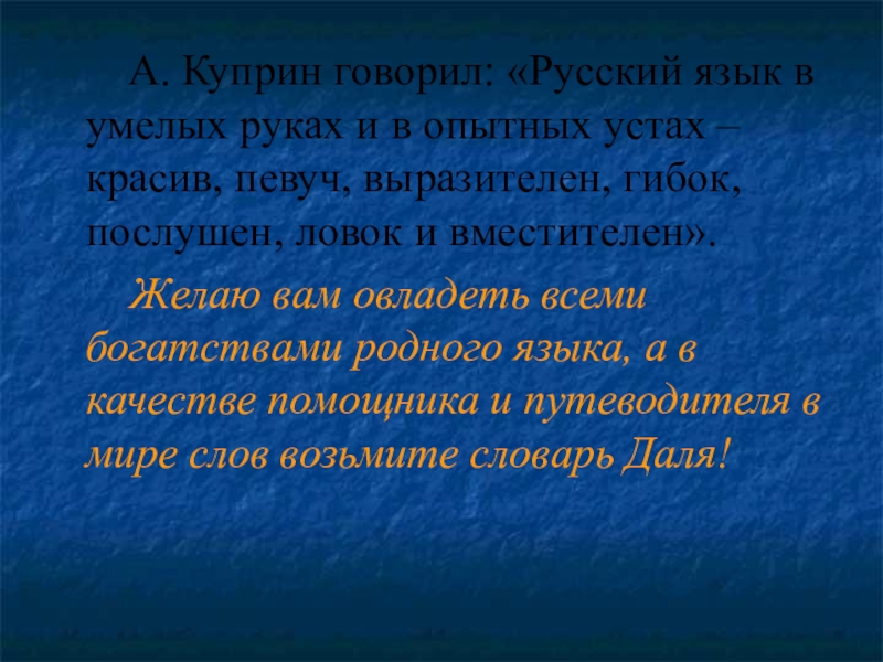А. Куприн говорил: «Русский язык в умелых руках