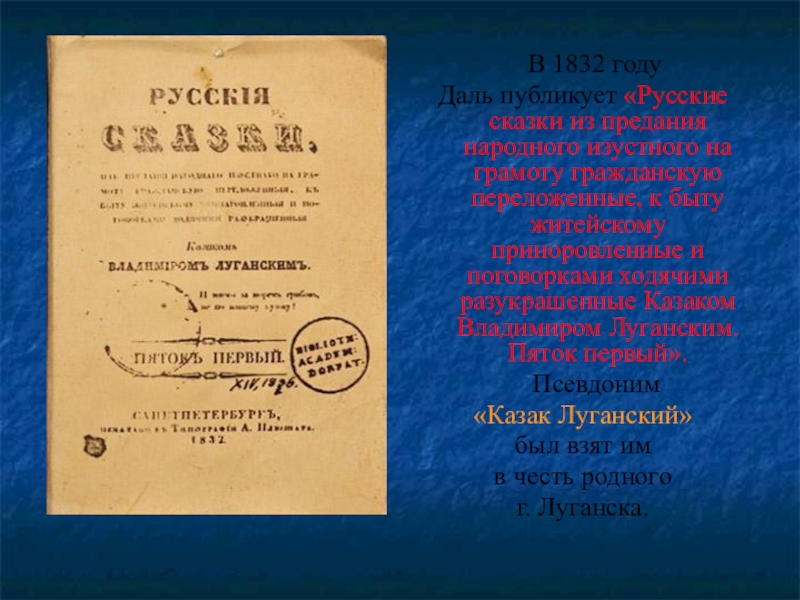 Даль публикует «Русские сказки из предания