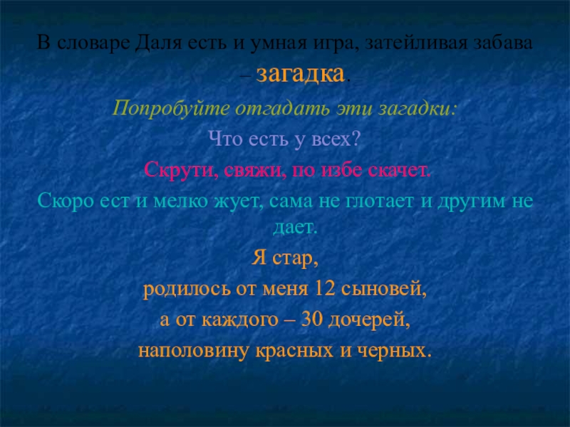 В словаре Даля есть и умная игра, затейливая забава – загадка.