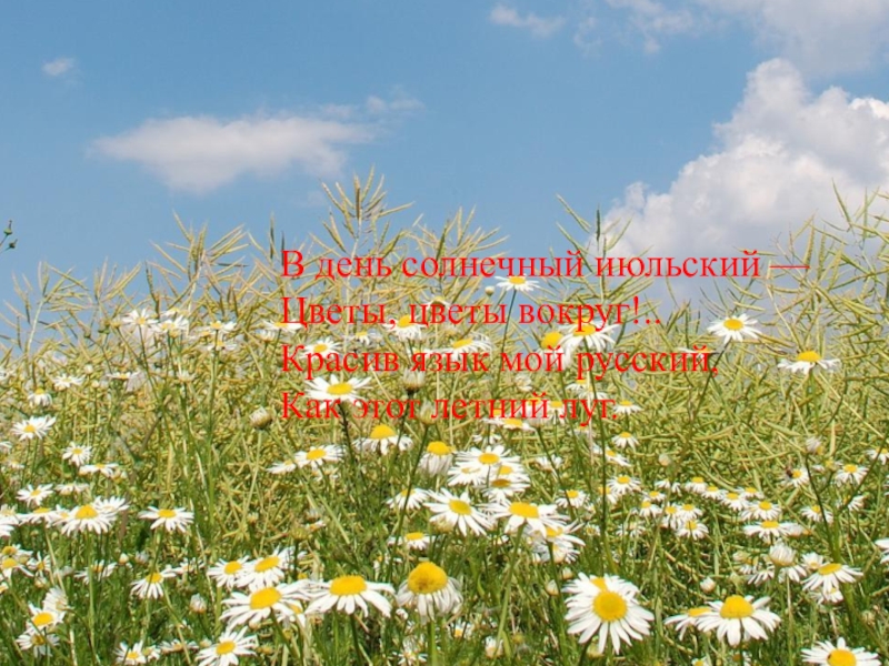 Слайд 1В день солнечный июльский —