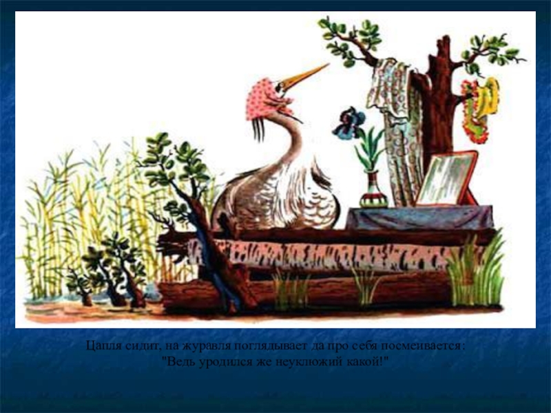 Цапля сидит, на журавля поглядывает да про себя посмеивается: