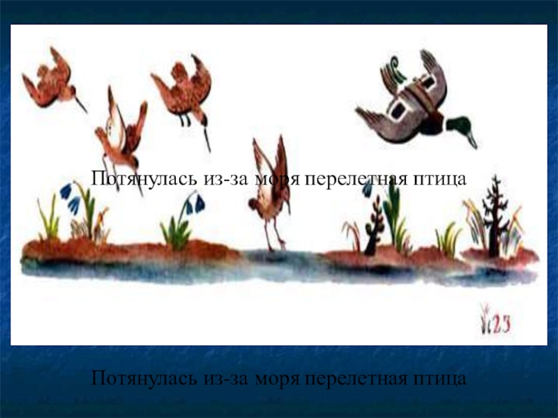 Слайд 25Потянулась из-за моря перелетная птица