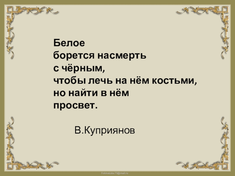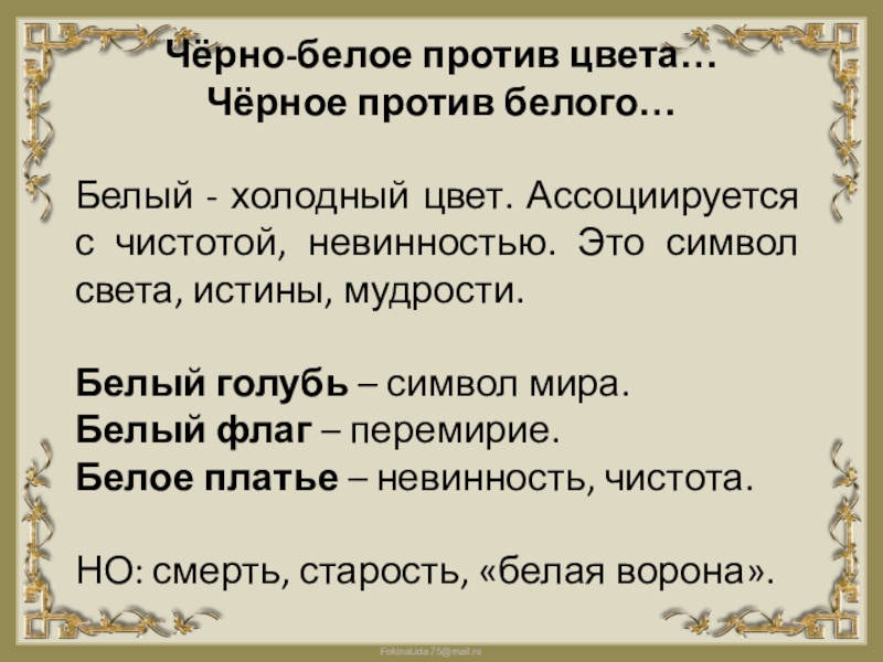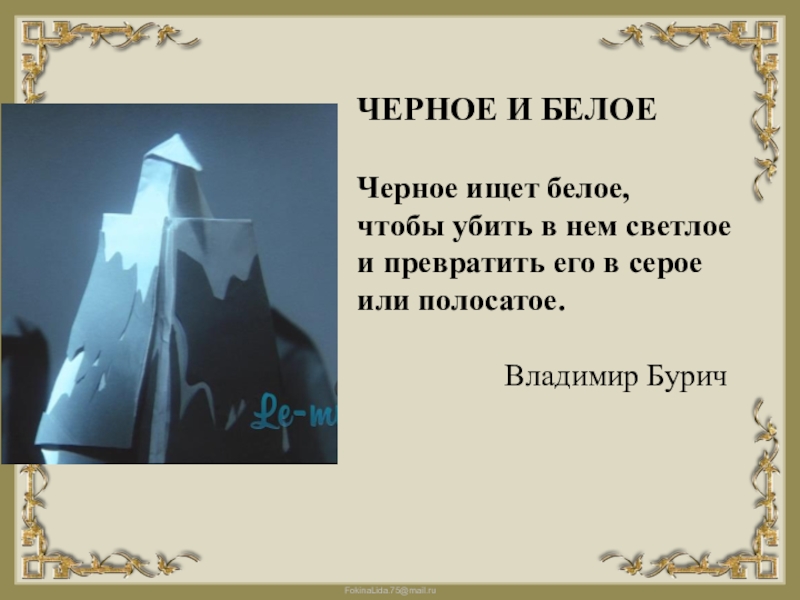 «Миру необходим чёрный цвет, чтобы белый был заметнее» Бернар Вебер