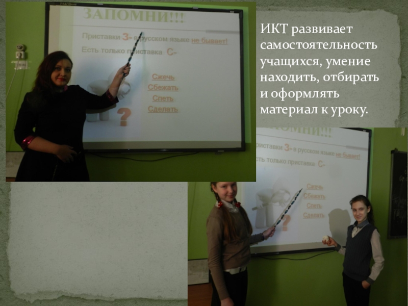 Слайд 4ИКТ развивает самостоятельность учащихся, умение находить, отбирать и оформлять материал к