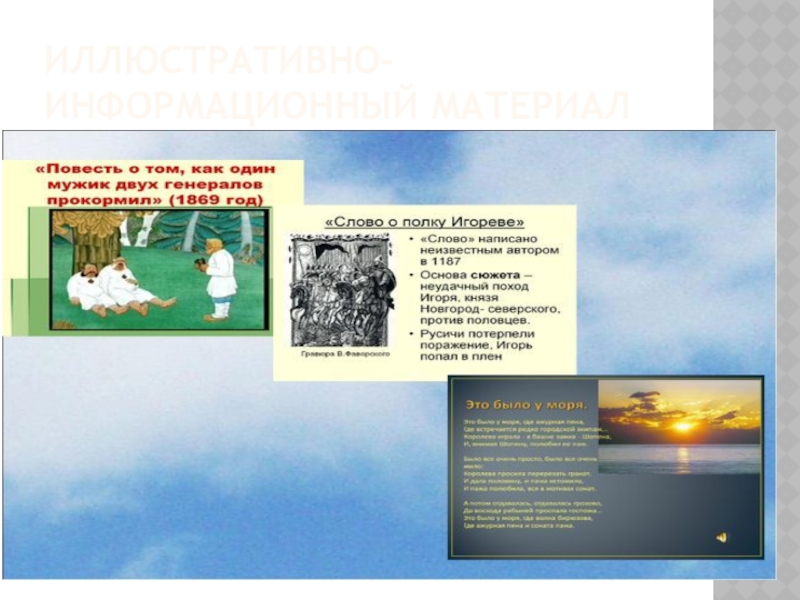 Слайд 10Привлечение фрагментов спектаклей, кинофильмов, опер, различных иллюстраций, дополненных выдержками из литературоведческих