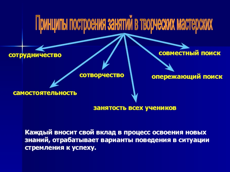 Каждый вносит свой вклад в процесс освоения новых знаний, отрабатывает варианты поведения в ситуации стремления к успеху.