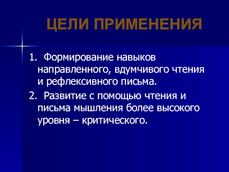 ЦЕЛИ ПРИМЕНЕНИЯ