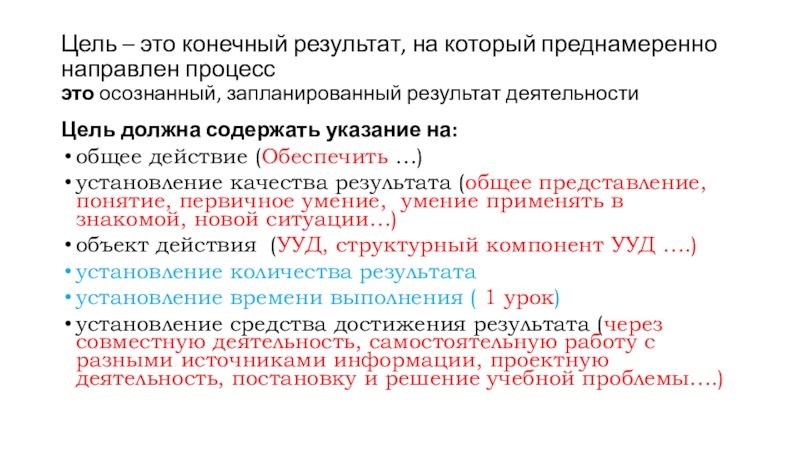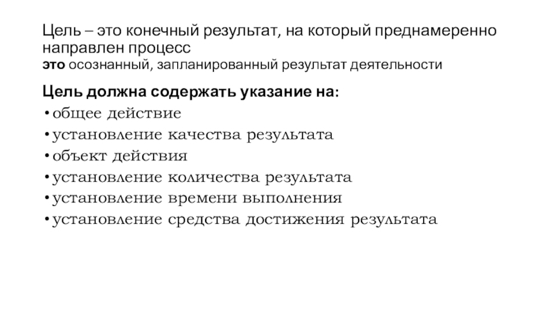 Слайд 4Цель – это конечный результат, на который преднамеренно направлен процесс