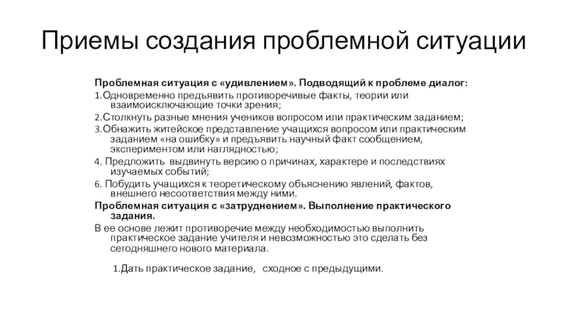постановка педагогической проблемной ситуации, направление учащихся на восприятие ее проявления, организация появления у ребенка вопроса, удивления или затруднения.