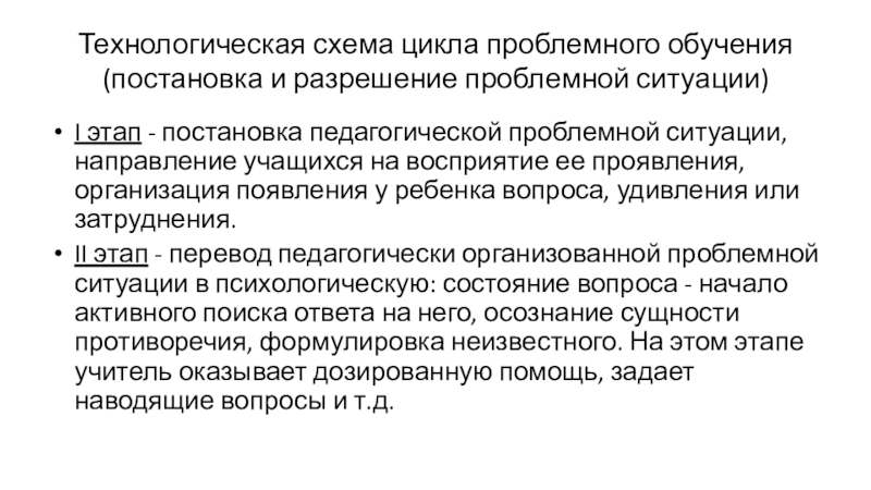 Слайд 12Технологическая схема цикла проблемного обучения (постановка и разрешение проблемной ситуации)