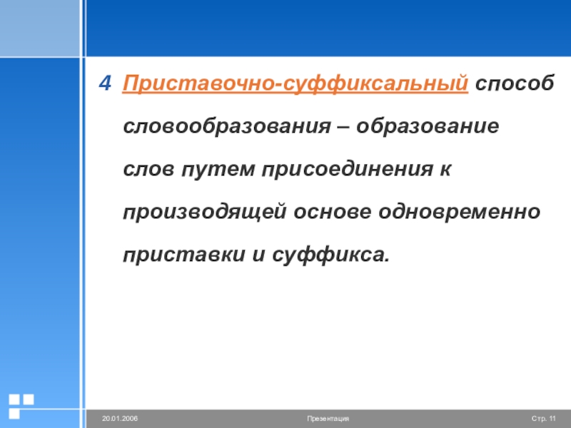 Приставочно-суффиксальный способ словообразования – образование слов путем присоединения к производящей основе