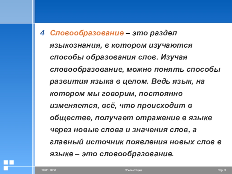 Слайд 3Словообразование – это раздел языкознания, в котором изучаются способы образования слов.