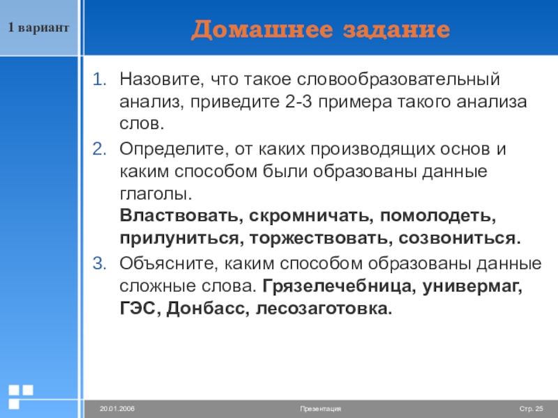 Назовите, что такое словообразовательный анализ, приведите 2-3 примера такого анализа