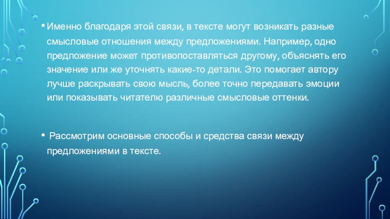 Слайд 3Именно благодаря этой связи, в тексте могут возникать разные смысловые отношения