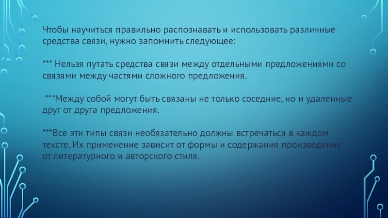 Слайд 12Средства связи предложений в тексте