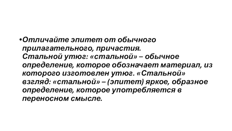 Слайд 5Отличайте эпитет от обычного прилагательного, причастия.