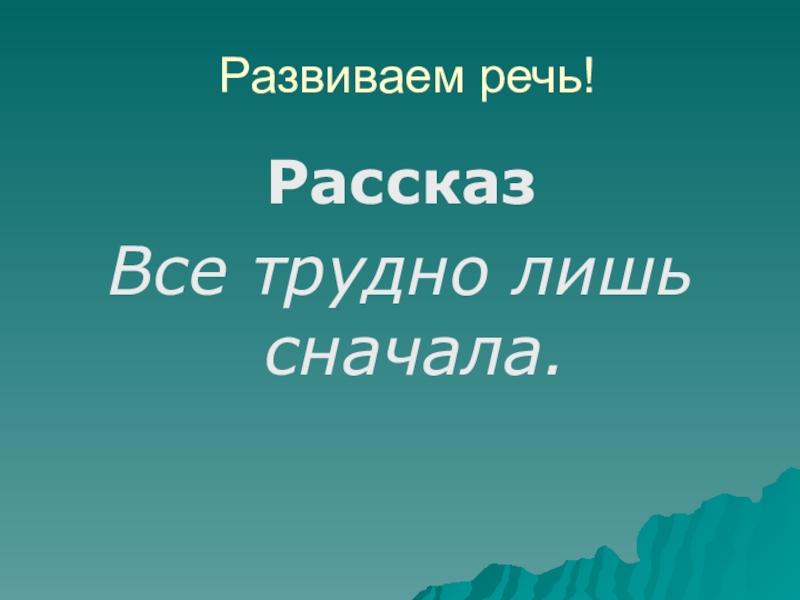 Развиваем речь!РассказВсе трудно лишь сначала.