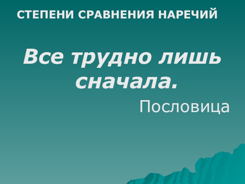 Все трудно лишь сначала.ПословицаСТЕПЕНИ СРАВНЕНИЯ НАРЕЧИЙ