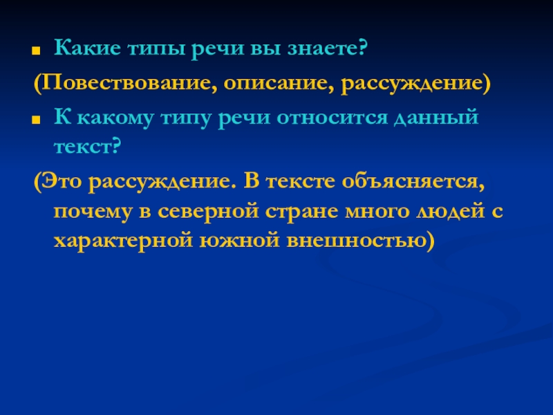 (Это рассуждение. В тексте объясняется, почему в северной стране много людей с характерной южной внешностью)