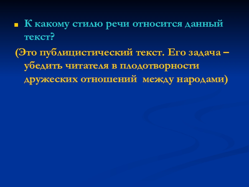 задача – убедить читателя в плодотворности дружеских отношений между народами)