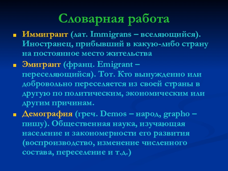 Иммигрант (лат. Immigrans – вселяющийся). Иностранец, прибывший в какую-либо страну