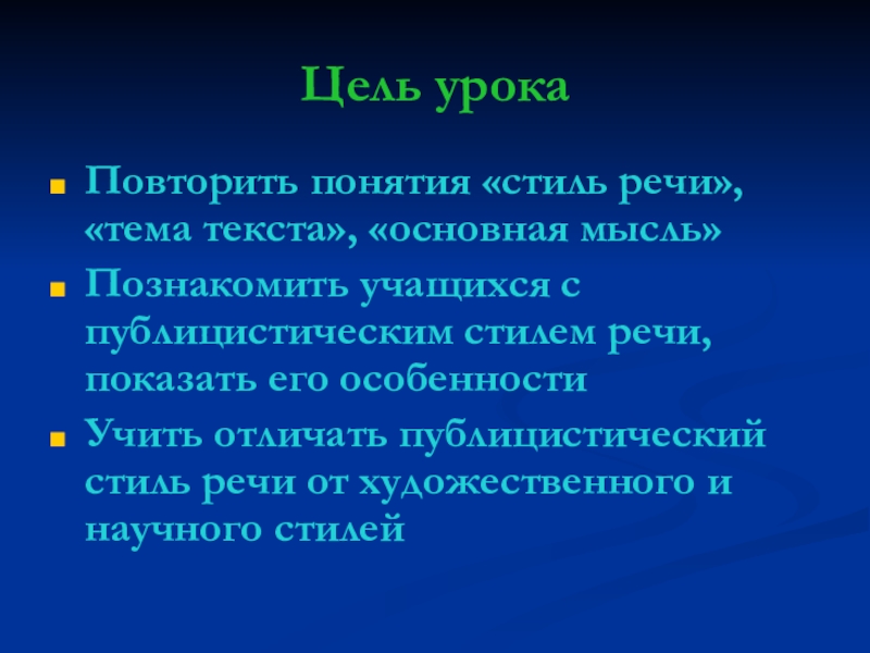 Повторить понятия «стиль речи», «тема текста», «основная мысль»