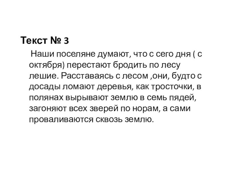 Текст № 3   Наши поселяне думают, что с сего дня ( с октября) перестают бродить