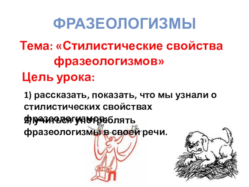 показать, что мы узнали о стилистических свойствах фразеологизмов;