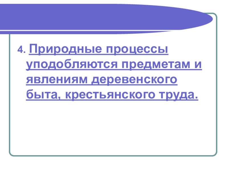 4.	Природные процессы уподобляются предметам и явлениям деревенского быта, крестьянского труда.