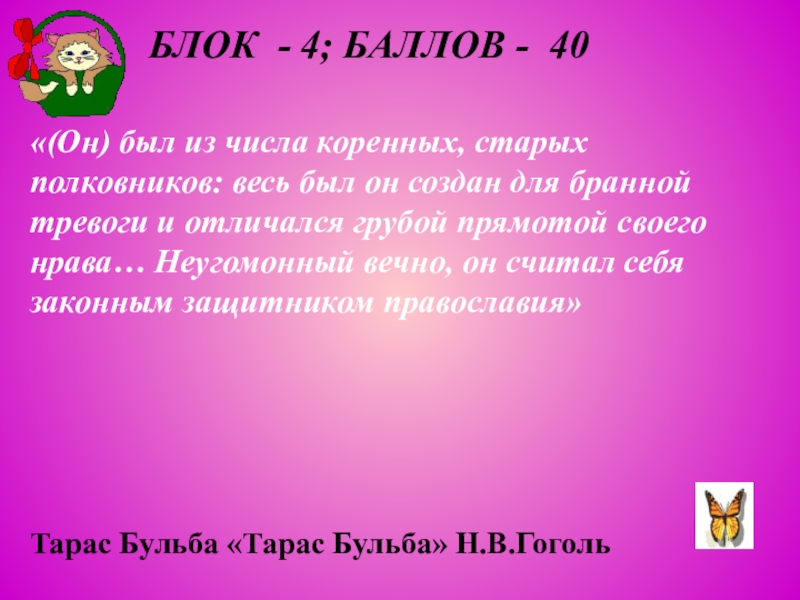 Тарас Бульба «Тарас Бульба» Н.В.Гоголь